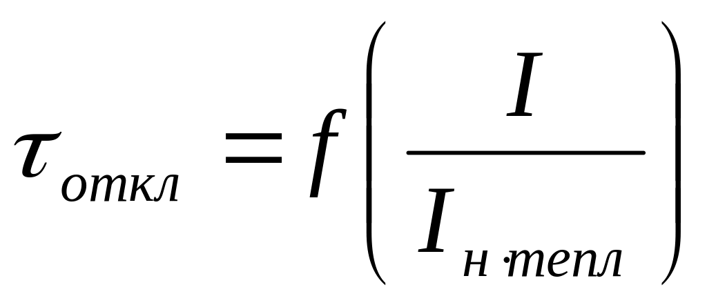 Защитной характеристикой аппарата защиты называется зависимость полного времени отключения цепи аппаратом защиты в функции величины тока, протекающего через него. При этом величина тока обычно выражается в относительных единицах, т.е. относится к номинальному току расцепителя или теплового реле, а для графического построения защитной характеристики используется логарифмический масштаб. Аналитически ее можно представить следующим образом:
