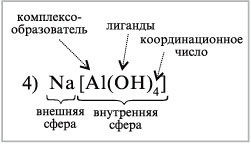 Название комплексного иона пишут в одно слово. Степень окисления центрального атома обозначают римской цифрой, помещенной в круглые скобки. Например: