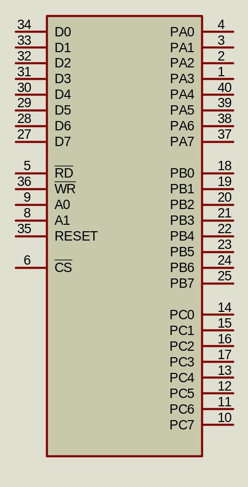 Программируемый периферийный адаптер (ППА) i8255 (отечественный аналог КР580ВВ55) представляет собой три канала ввода/вывода A, B и C по 8 бит каждый. Существует три режима работы микросхемы. В режиме 0 три упомянутых канала могут быть независимо друг от друга запрограммированы на ввод или вывод информации. Режим 1 позволяет передавать информацию по каналам A и B, используя отдельные биты канала C для управления обменом данными. В режиме 2 канал A приобретает свойство двунаправленной шины, управляемой опять же отдельными битами канала C. Кроме того, возможны установка и сброс отдельных битов канала C. Микросхема выпускается в 40-выводном DIP-корпусе.