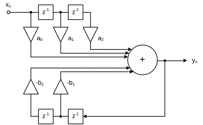 y[0]=(a0*x[0]+a1*x[1]+a2*x[2]-b1*y[1]-b2*y[2]);