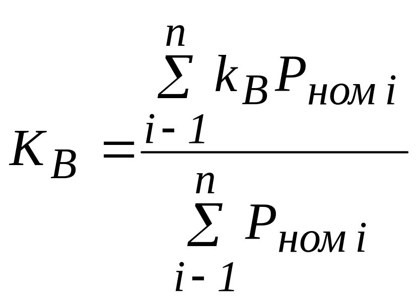 Для группы приемников электроэнергии, состоящей из подгрупп с одинаковым режимом работы, средневзвешенный коэффициент использования активной мощности определяется с достаточной для практических расчетов точностью по той же формуле, если в нее подставить значения kи и Рном для подгрупп приемников.