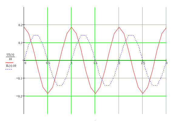 Строим осциллограммы и векторные диаграммы тока и напряжения на индуктивности: