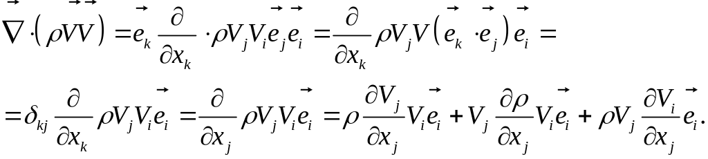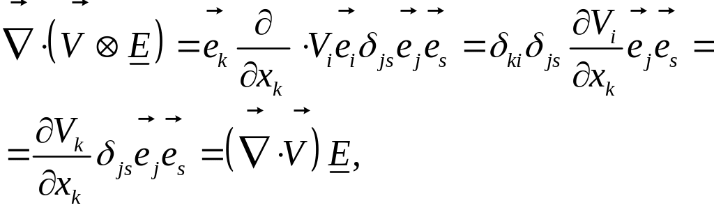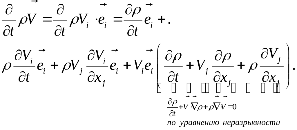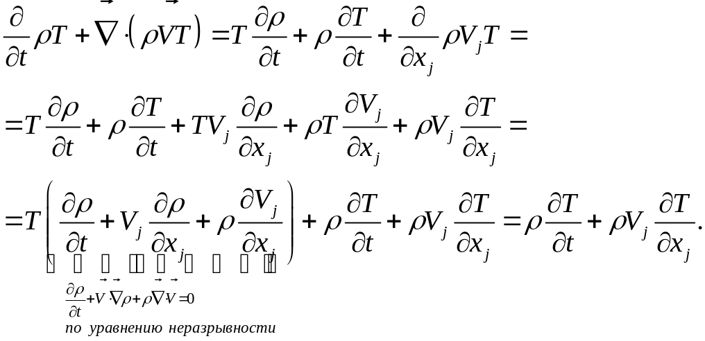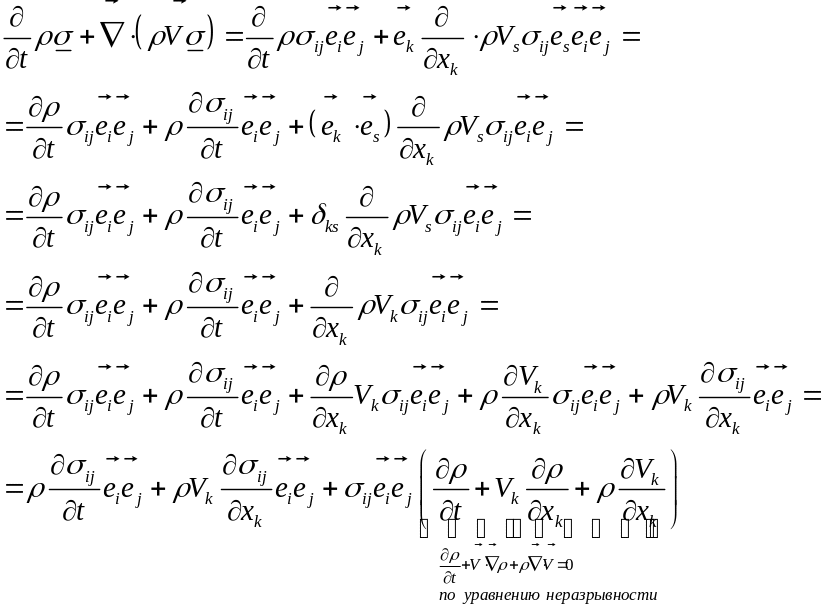Поскольку выражение в скобках равно нулю по уравнению неразрывности, то тождество верно и для случая, если является векторной величиной.