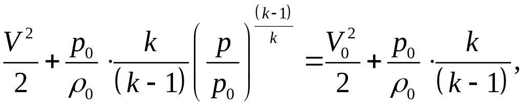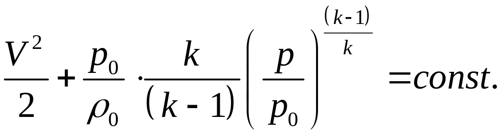 В итоге уравнение Бернулли для струйки совершенного газа при его адиабатическом движении имеет вид: