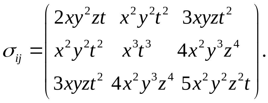 В качестве примеров физических полей приведем следующие, заданные для простоты, в виде некоторых степенных функций координат и времени: