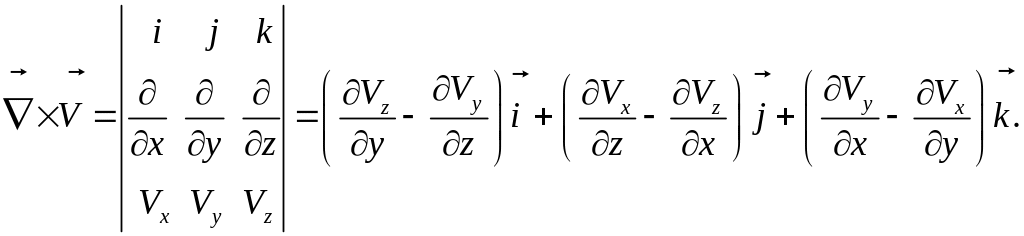 Ротор вектор-функции есть вихрь, через оператор ротор вектора скорости записывается как результат векторного произведения: