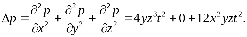 Упражнение 6. Вычислим лапласиан поля давлений, данного выражением (1.6.5)