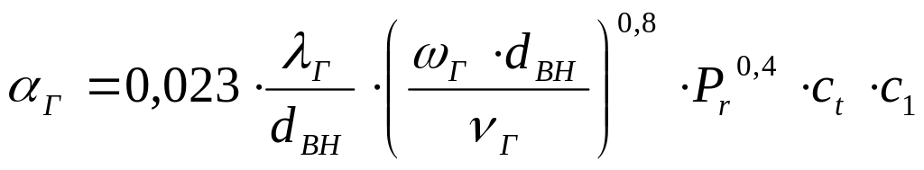 4.2.1 Коэффициент теплоотдачи газов к стенкам дымогарных труб, Вт/(м2·К):
