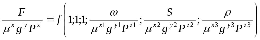Отримані в результаті перетворень безрозмірні комплекси можуть мати більш складний характер і їх фізична інтерпретація викликає певні труднощі, хоча алгоритм їх визначення залишається тим же самим. Приймемо для прикладу в якості незалежних розмірності μ, g, P. Тоді безрозмірна функція буде мати вигляд: