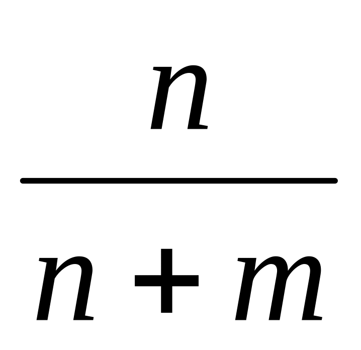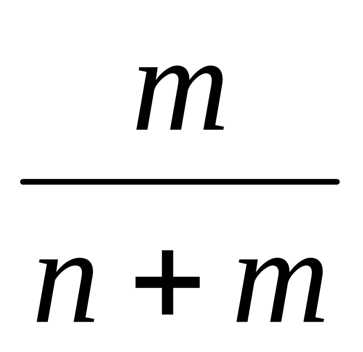 Імовірністю сприятливої події називають відношення можливого числа всіх сприятливих подій до повного числа подій, яке вміщує в себе як кількість сприятливих подій п , так і кількість несприятливих m:
