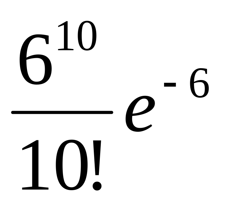 Приклад. За 5 хвилин через перехрестя проїздить в середньому 6 автомобілів. Яка імовірність появи перед перехрестям за той же час 10 автомобілів ?