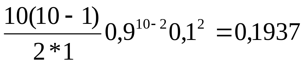 Відповідно імовірність однієї, двох та 10 відмов на тиждень: