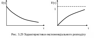 Експоненціальний закон розподілу використовують для аналізу надійності обладнання, якщо раптові його відмови виникають внаслідок пікових навантажень. Густина розподілу випадкового часу безвідмовної роботи і функція розподілу мають вигляд: