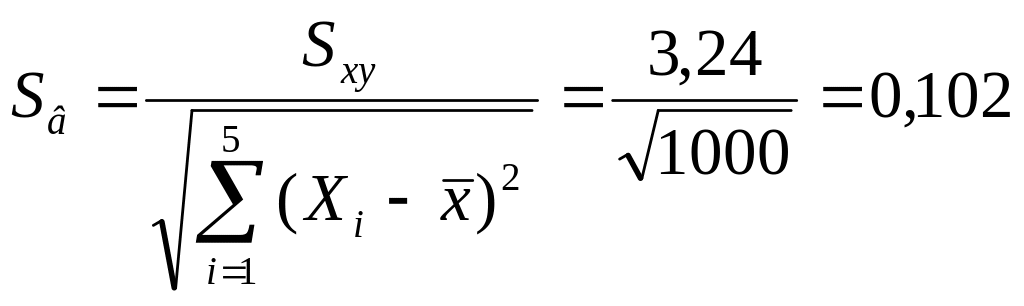 Вибіркове стандартне відхилення коефіцієнта регресії та розрахункове значення t – критерію для нього: