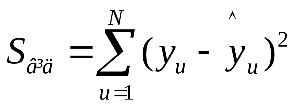 Для перевірки адекватності моделі розраховують суму квадратів відхилень експериментальних даних уu від прогнозованих :