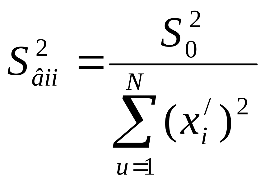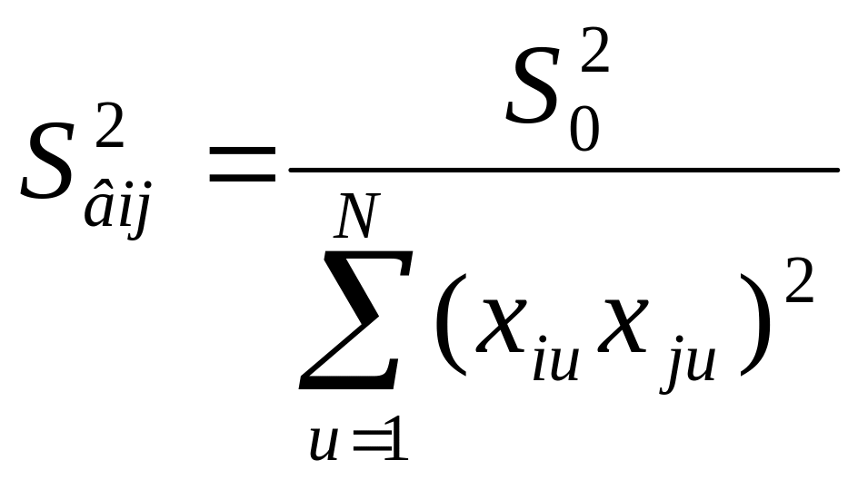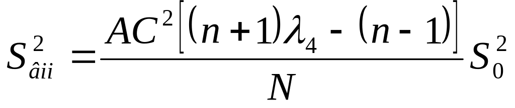 Дисперсії коефіцієнтів обчислюють за формулами: