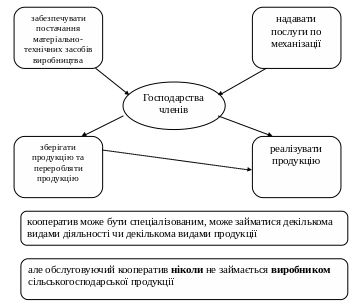 Фактично ця діяльність є частиною економічної діяльності кожного господарства, яка передається кооперативу і здійснюється спільно.