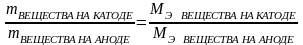 II закон Фарадея: при пропускании через раствор или расплав различных электролитов одинакового количества электричества, выделяющиеся на электродах массы веществ, прямопропорциональны молярным массам их эквивалентов: