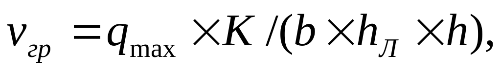 vгр = 0,417 ×1,05/(0,016 × 0,7 × 39) = 1,00 м/с. (4.4)