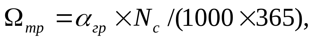 де αгр — покидьки, що затримуються ґратами СУ з шириною прогорів 0,0052 м; αгр = 8 × (4÷6) л/(чол. × р.);