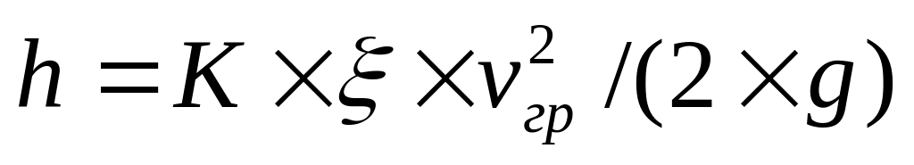 hгр = 3 × 0,58 × 1,482/(2 × 9,81) = 0,19 м. (4.29)