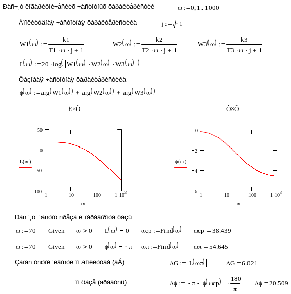 φСР = - 159о; ωπ = 2*π*9.233 = 58 c-1; G(ωπ) = -7.034 дБ; φπ = -182.8o.