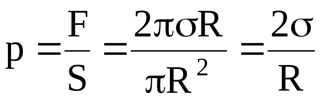 Скривлення поверхневого шару рідини призводить до появи додаткового тиску на рідину, який визначається рівнянням Лапласа