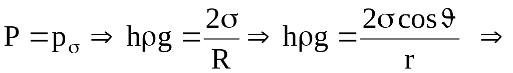 Вираз (1) можна одержати з рівності сили поверхневого натягу та сили тиску рідини в капілярі так. Тиск стовпа рідини висотою h дорівнює