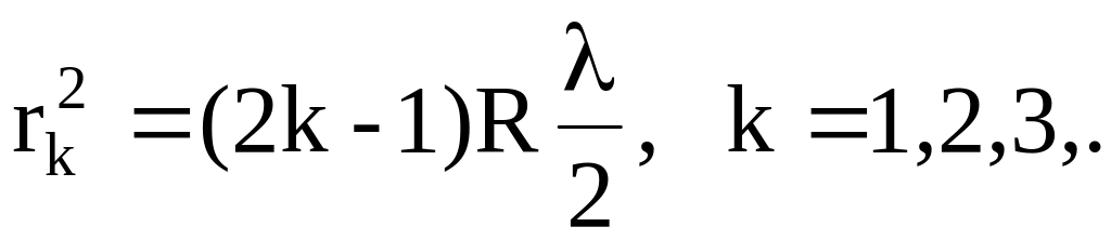 Кільця Ньютона інтерференційна картина, що спостерігається в оптичній схемі, представленій на Мал.144. Плосковипукла лінза з достатньо великим радіусом кривизни R повернена випуклою поверхнею до плоскої пластинки П і дотикається до неї у точці О.