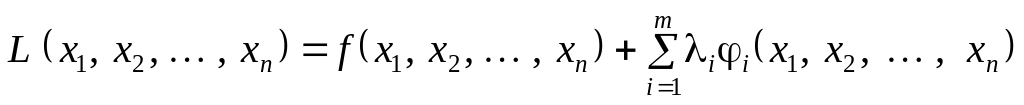 ● Функції u і двічі неперервно диференційовні. Ранг матриці Якобі (17) в даному разі дорівнює 1 у всіх точках, що задовольняють рівняння зв’язку. Отже, можна скористатися методом Лагранжа. Запишемо функцію Лагранжа