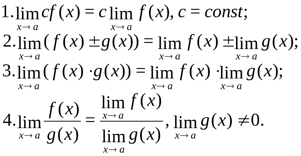 Це так звані арифметичні властивості функцій, що мають скінчені границі.