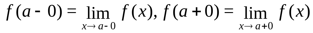 називаються відповідно границею функції зліва в точці і границею функції справа в точці . Границю зліва в точці та границю справа в точці називають односторонніми границями.