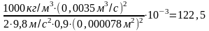 ρж – плотность жидкости, кг/м3,