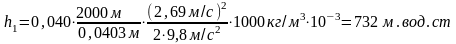 h1 – потери напора в промывочных трубах