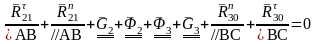 В связи с этим в первую очередь определяют касательные составляющие реакций из уравнений моментов сил относительно внутренней точки диады В, составленных для каждого звена отдельно.