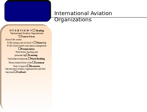 - •Discuss with your partner International Aviation Organizations using the following words and expressions: