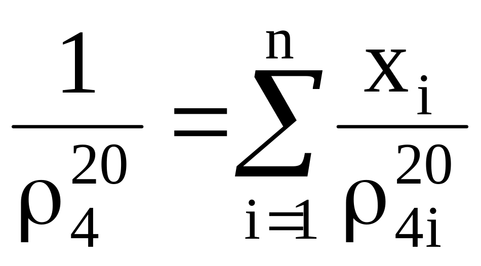 Относительную плотность компонента определяем по данным табл.1 или по уравнению аддитивности: