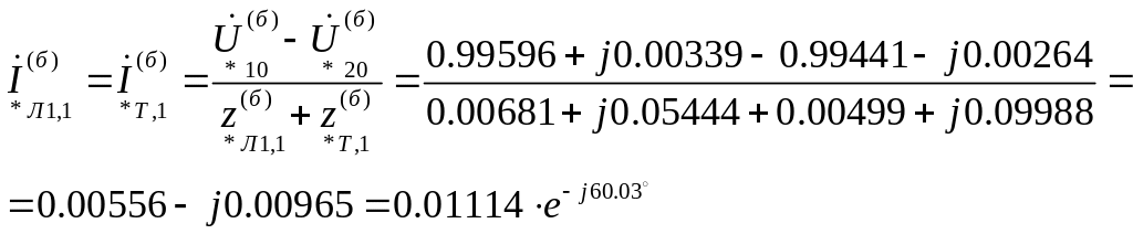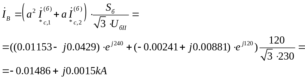 По найденным значениям токов прямой, обратной и нулевой последовательностей определим фазные токи на элементах.