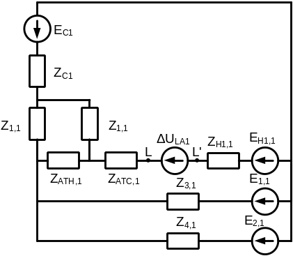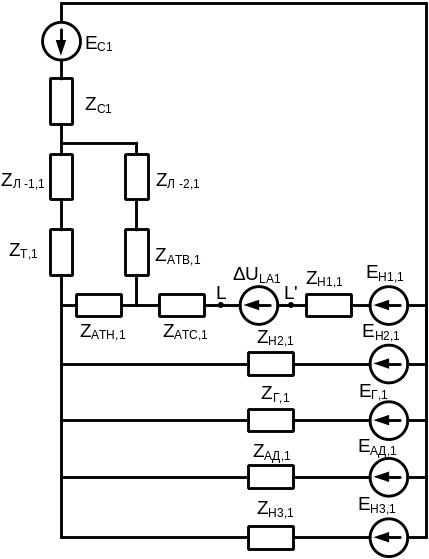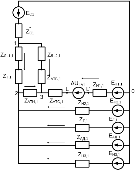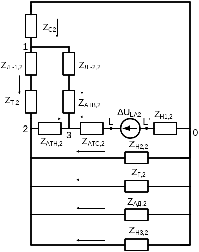 Посчитаем токи прямой последовательности методом узловых напряжений.