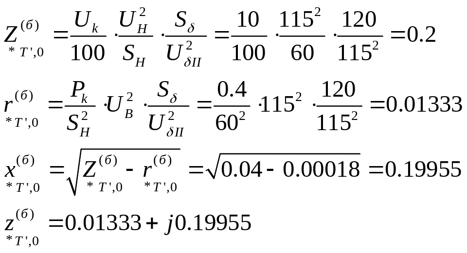 T’: SH=60 МВА; 115/11 кВ; Uk=10%; Рк=0.4 МВт.