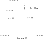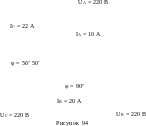 Задача №3 (варианты 01-100) По заданной векторной диаграмме (31-50)для цепи переменного тока с последовательным соединением элементов (резисторов, индуктив-ностей и ёмкостей) начертить эквивалентную схему цепи и определить следующие вели-чины: 1) сопротивление каждого элемента и полного сопротивления цепи z; 2) напряже-ние U, приложенное к цепи; 3) угол сдвига фаз φ (по величине и знаку); 4) активную Р, реактивную Q и полную S мощности цепи. Данные для задачи – таблица 4. ме для цепи перемен-