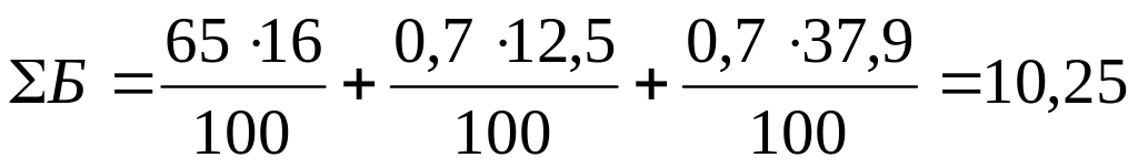 Рассчитываем содержание углеводов в сырьевом наборе.