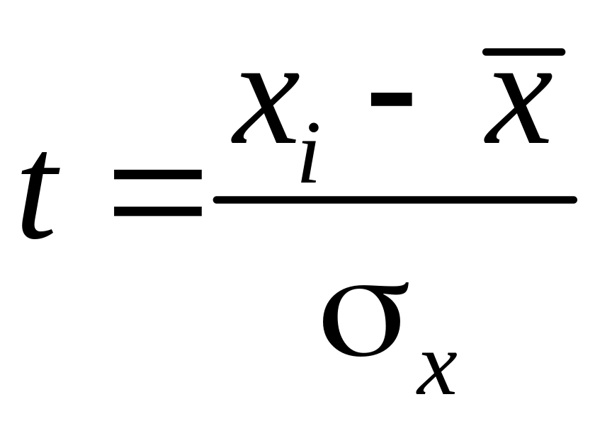 Відхилення тієї чи іншої варіанти від середнє арифметичної, віднесене до величини середнє квадратичного відхилення, називають нормованим відхиленням [1, 2]:
