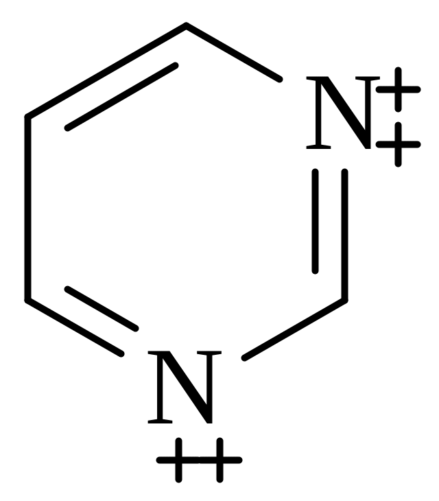 Здесь оба атома азота пиридиновые, т.к. их неподелённые пары электронов свободны и могут присоединять протон.
