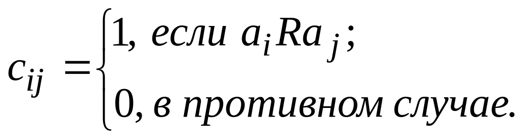 Для любого множества М отношение Е, заданное единичной матрицей, в которой по главной диагонали стоят “1”, а остальные “0” – называется отношением равенства.