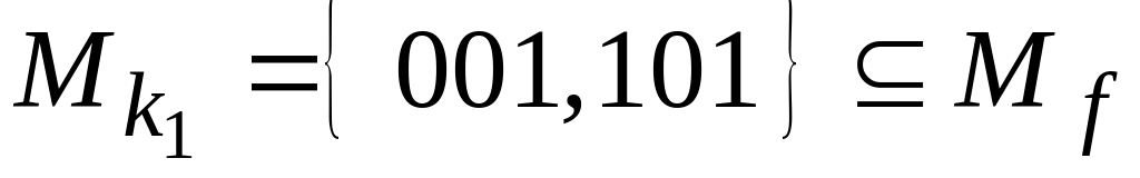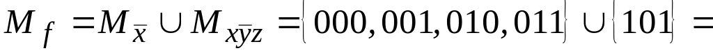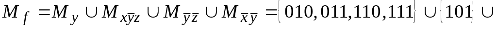 Утверждение 1. Представление функции в виде ДНФ соответствует представлению ее единичного множества в виде объединения единичных множеств входящих в эту ДНФ элементарных конъюнкций.