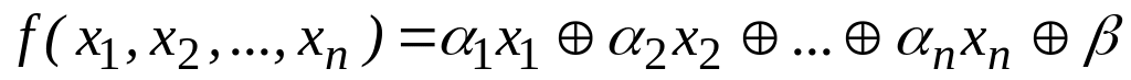 Линейной функцией называется функция, полином Жегалкина которой имеет вид: