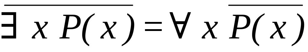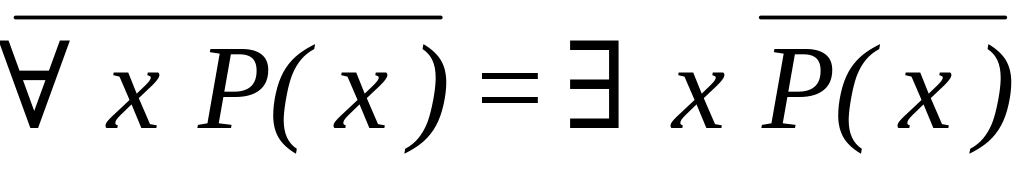 Как и в логике высказываний, в логике предикатов имеются эквивалентные соотношения, позволяющие преобразовывать предикатные формулы. Например,