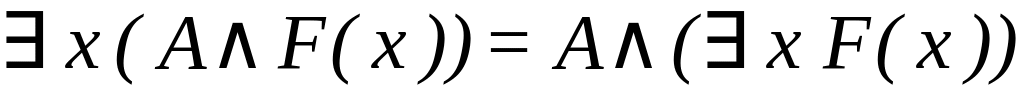 формулу, не содержащую переменную , можно вынести за пределы действия квантора, связывающего :