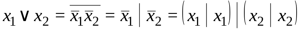 Построить комбинационную схему в базисе «штрих Шеффера», реализующую дизъюнкцию .
